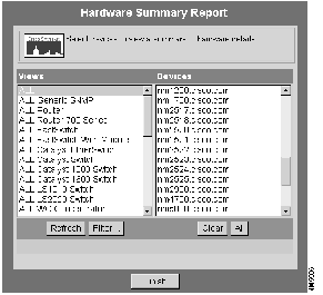 Scenario: You want to display reports that display the hardware and software information of devices on your network. For your first report, you want to know what types and what types of chassis reside on all the routers on your network. Then you want to know what software versions they are running.