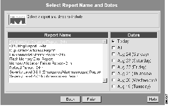 Step 4 Select the name of the report you want to view, select the date, then click Finish.