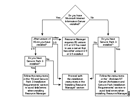 If you installed Microsoft Windows NT Server/Workstation 4.0 and Service Pack 3, and you are about to install IIS 2.0 as required by Resource Manager, you must be very careful that you do not select the ODBC Drivers and Administration option.