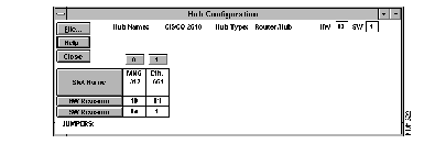 Note The Hub Configuration window displays information about the router/hub's network management component and Token Ring or Ethernet modules, but not the router component.