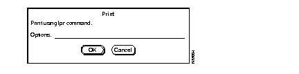 If printer environment options exist, they appear in the dialog box in the Options field. As soon as you begin to type the new print command, the previous command is overwritten. If you change your mind about printing, click on Cancel.