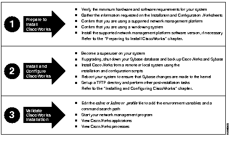 Follow these basic steps to prepare to upgrade from a previous release of CiscoWorks, or to install and configure CiscoWorks for the first time.