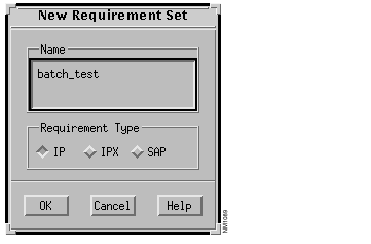 The New Requirement Set window, shown in Figure 6-3, is displayed. The new set of protocol dependent (in this case IP) connectivity requirements to be created are saved to the connectivity requirements file set specified in this window.