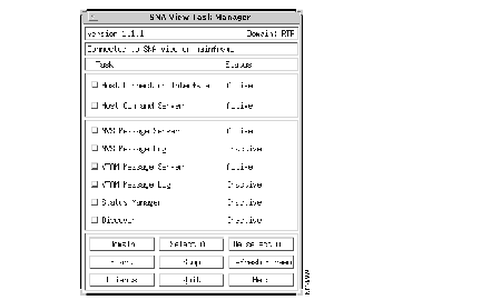 The Task Manager allows users to monitor and manage the SNA View workstation tasks for each managed SNA domain. Using the Task Manager, users can start and stop the: