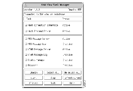 Step 2 In the Available Domains window, highlight a domain name and click the Connect button. The SNA View Task Manager will attempt to connect to the SNA View application on the mainframe, if the connection is IP. If the connection is LU 6.2 and the SNA View mainframe application is started, then the SNA View workstation application should already be connected. Figure 4-3 shows the SNA View Task Manager window.