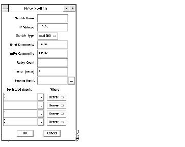 | Roving Agent | If you are setting up a roving or proxy agent to monitor the switch, the name of the agent must be displayed in this field. Select the button to the right of the field, then select the name of the agent from the Agent List and click OK. You can include this agent in the display when you are monitoring the switch. |