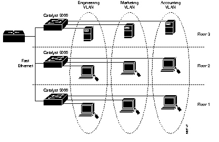 Figure 1-1 shows the difference between LAN and VLAN segmentation.