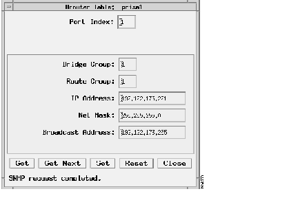 The Brouter Table window, shown in Figure 5, displays bridge/router information about a particular port on a module.