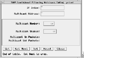 - Multicast Status--Indicates if the IP multicast group of this table is to be preserved or deleted. Note that if you wish to delete it, the value in the Multicast Address field should be set to Invalid.