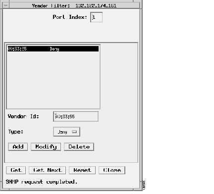 The Vendor Filter window, shown in Figure 8, lets you filter packets based on the Vendor ID and Type defined in this window. You can define upto a maximum of 64 Vendor Ids for the enitre system.