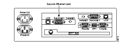 Figure 2-3 shows the rear panel and the indicators, switches, and ports on the Ethernet SwitchProbe model. The Ethernet card shown on the left side of the illustration is only present in the dual Ethernet SwitchProbe models.