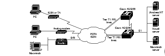 The Cisco AS5200 supports the needs of the following users who access network resources with digital and analog calls: