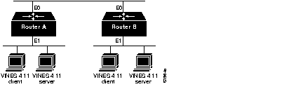 For an example of how to configure VINES routing for various network topologies that include serverless networks, see the "Serverless Network Configuration Example" section at the end of this chapter.