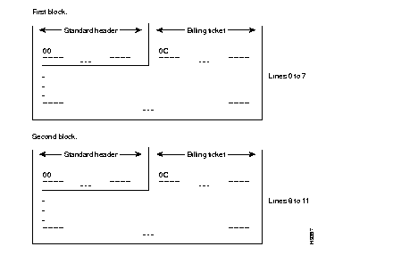 An overall billing ticket is made up of information blocks relating to lines 0 to 5.