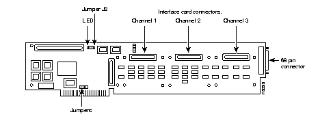 The default interface for each port is RS-232. The interface adaptor card enables each port to present an RS-422, V.35, or X.21 interface, as selected by the position of the interface adaptor card.