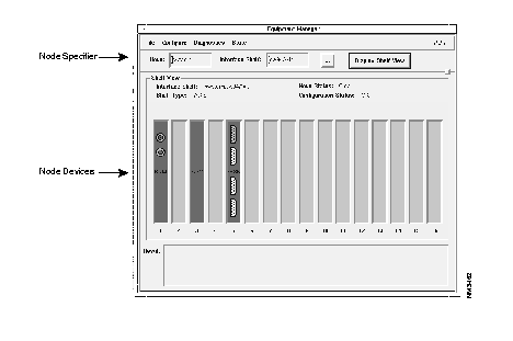| Shelf View | This region contains a graphical display of the cards in the interface shelf. The cards are represented as buttons. The card type is printed on the card. Under each card is the slot number. You can select one card at a time for menu item actions. |