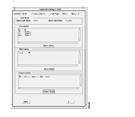 | Line Alarms | This region displays the front and back card states. |