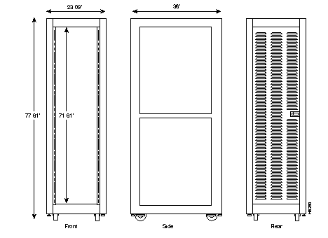 The cabinet, see Figure 2-10, is essentially a 19" rack with panels on all sides (including top and bottom) except the front. The rear panel is a louvered hinged door. The cabinet is equipped with casters, brakes and leveling bolts. The cabinet also includes earthquake safety holes so that the cabinet can be secured to the floor using studs.