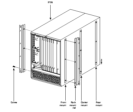 If an IPX 8 is ordered with the rack mounting hardware, it comes with two rack-mounting rails strapped to the top packing plate. To install the IPX 8 in a rack by using these rails, refer to Figure 2-8 and proceed as follows: