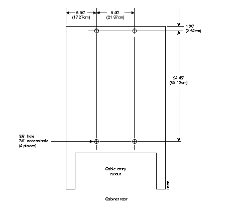 To provide protection against seismic activity, the IPX 16/32 cabinet is equipped with holes that permit the cabinet to be bolted to a concrete floor or to a structural member in the floor. The cabinet base has four sets of holes (two sets at the lower front and two sets at the lower rear). Each set consists of a large socket access hole above a smaller hole. The lower, smaller hole accepts the bolt that is attached to the floor. The upper, larger hole provides access for a socket wrench to tighten the bolt (see Figure 2-1 and Figure 2-2).
