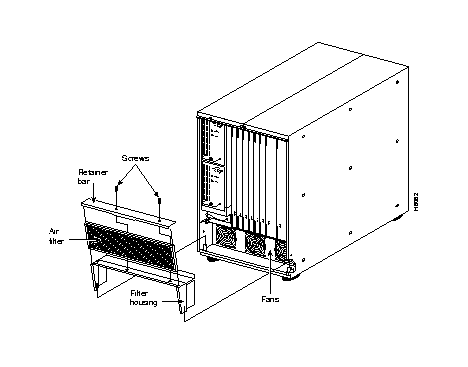 Every two months or more often depending on the environment, inspect the air filter assembly for dust buildup.The air filter sits below the card cage in the IPX 8 cabinet, at the front (Figure 3-2).