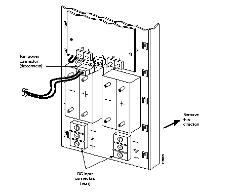 Step 9 Disconnect the fan power cable from connector J2 at the inside, rear of the PDU.