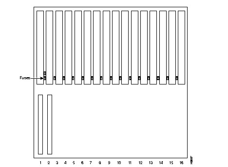 In the IGX 8, backplane fuses exist only on the back of the backplane. In an IGX 16/32, the location of the fuse depends on the version of the backplane. In older IGX 16/32 backplanes, the fuses reside on the front. Figure 5-8 shows the location of each fuse in an IGX 8 backplane. The fuse numbers are F1-F8. Two spare fuses are also present. Figure 5-9 and Figure 5-10 show current and early backplane fuse locations in the IGX 16 backplane.