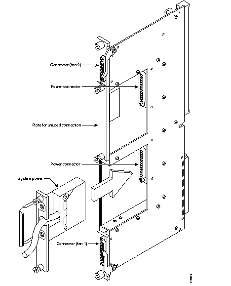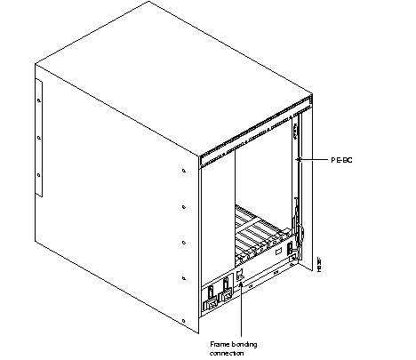 In both AC-powered and DC-powered systems, the PE-BC connects the -48 VDC primary power for the system to the backplane. It also routes power to the fan tray. In an AC-powered system, a cable from the supply module plugs into the PE-BC. In a DC-powered system, the PE-BC must have at least one PEM. Figure 2-10 shows a PE-BC for an AC-powered system.
