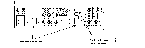A power circuit breaker for each card shelf exists on the back panel. This allows power for each card shelf to be individually turned on and off. (An IGX 16 has two, card shelf circuit breakers, but only one is meaningful.) The back panel also contains one or--with AC redundancy--two AC power inputs. Figure 2-15 shows the back of the AC power supply section on an IGX 32 with redundancy for AC power input. In Figure 2-15, the node has a main circuit breaker on the power supply shelf for each AC power input.