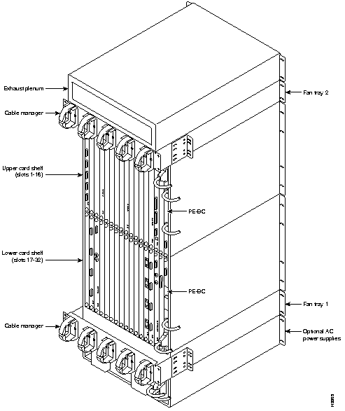 An exhaust plenum resides at the top of each unit. Cooling air for the cards enters through a grille on the front of the fan tray beneath the card cage and exits through the rear of the exhaust plenum. In an IGX 32, the booster fan tray has no grille.