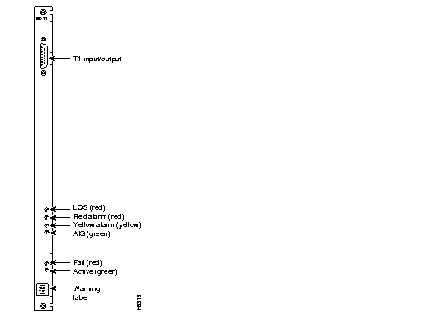 The T1 Trunk Interface Card (BC-T1) card terminates a single 1.544 Mbps T1 trunk line on the NTM. The BC-T1 can reside in any rear slot 3-8 in an IGX 8, 3-16 of the IGX 16, or 3-32 of the IGX 32. The BC-T1 connects directly to the NTM.