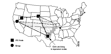 To select objects on the Network Topology map, position the cursor on the object and click the left mouse button. If you click on an IPX, BPX, or access node, you connect to that node and an Administration Window is displayed.