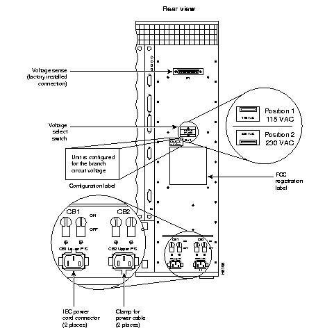 An AC Power Distribution Unit (AC PDU), located at the rear of the IPX 8 cabinet (Figure 2-16), protects the system and distributes the AC voltage. The voltage selector switch, two circuit breakers, two AC receptacles, and a voltage sense connector are mounted on the rear panel of the AC PDU.