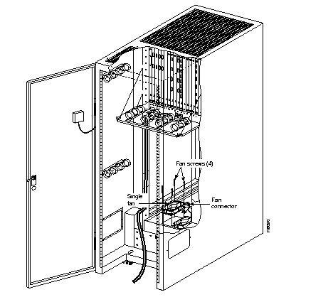 Step 3 At the front of the cabinet, slide the four-fan assembly into place and secure it with four screws and lock washers.