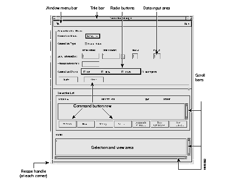 The NetView and Motif windows, dialog boxes, and screens used throughout the StrataView Plus GUI contain common elements which provide the look-and-feel, as well as the tools you need to manage your StrataView Plus work environment.