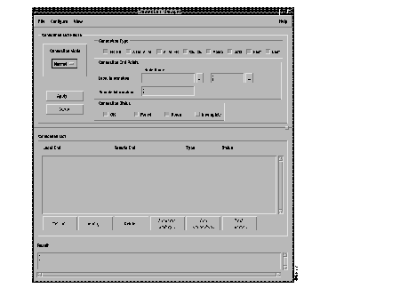 | Connection List | A scrolling text window displaying all the connections which match the filter criteria. The user may select one or more entries from this list for modification or delete. Each entry in the list has the following format: |