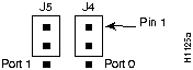 The dual serial network processor module contains two jumpers, J4 and J5 (see Figure 4-21), which determine whether the ports are configured for nonreturn to zero (NRZ) or nonreturn to zero inverted (NRZI). J4 configures serial port 0, and J5 configures serial port 1. The factory-configured (default) jumper setting is for NRZ. To configure for NRZI mode on each port, the jumper must connect pins 1 and 2 of the respective jumper locations. (See Figure 4-22.) For NRZ (not NRZI), the jumpers that connect pins 2 and 3 can be removed.
