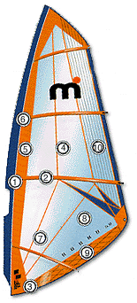 high tech materials like Tri Ply Scrim in the foot and warp scrim in the luff. The