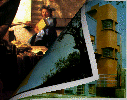 Real-time video special effects such as the "page-turn" shown here can be implemented using Onyx RealityEngine systems with IRIS Performer. Live video images can be manipulated when the Sirius Video option is used. The IRIS Performer based Tele program shown here was developed by Wade Olsen and Vince Uttley of SGI. It is available in source form and can perform many innovative video transitions. Tele is a cornerstone of SGI's Silicon Studio video environment.