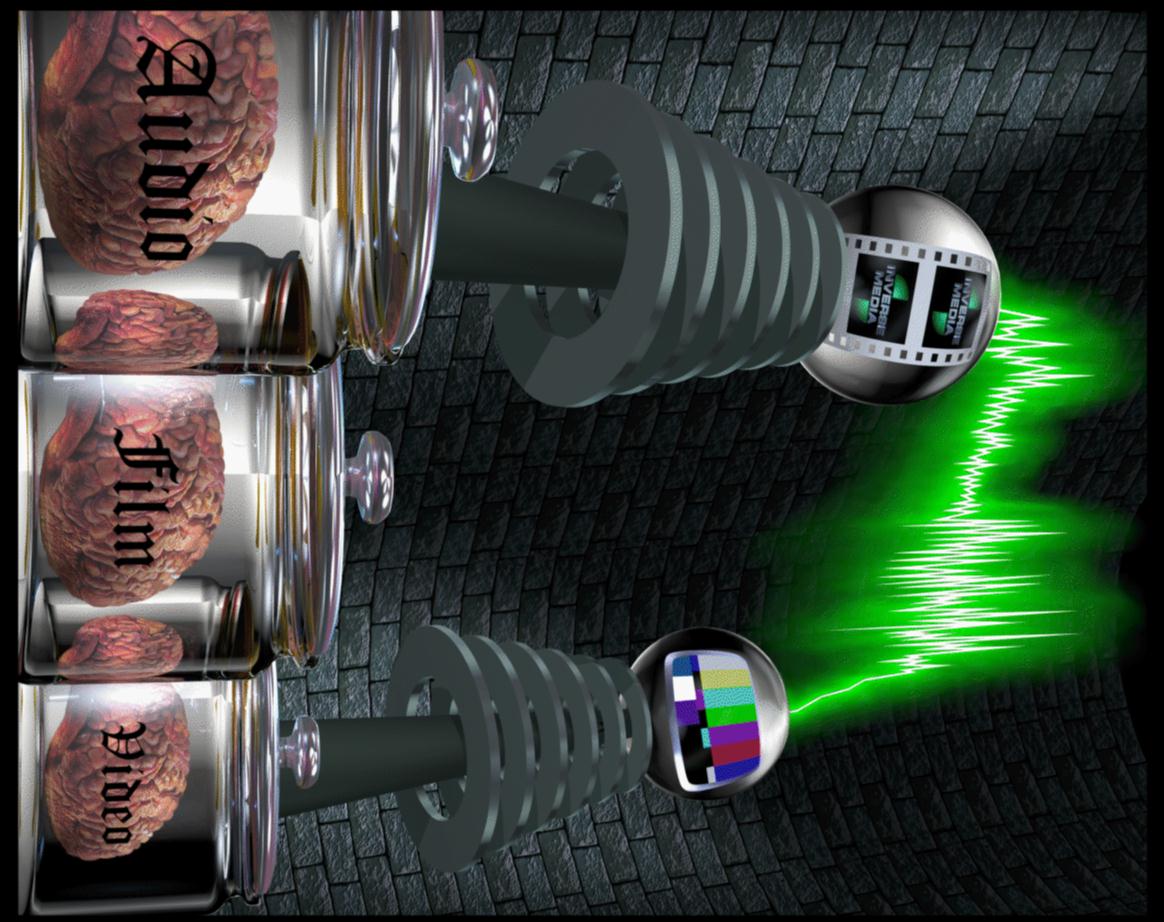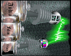 worlds TV & film linked by a lightning bolt that is an actual digital