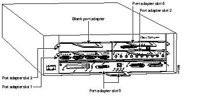 Port adapter slots in the Cisco 7204 router are numbered from left to right, beginning with port adapter slot 1 and continuing through port adapter slot 4. Port adapter slot 0 is the Fast Ethernet port on the I/O controller (refer to Figure 1-2).