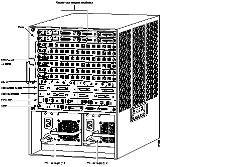 Supervisor 100BaseTX: RJ-45 (female), MII 1(female) Supervisor 100BaseFX: MMF SC, SMF SC Group Switched 10BaseT: RJ-21 (female), 48 interfaces Switched 10BaseT: RJ-21 and RJ-45 (female), 24 interfaces Switched 10BaseFL Ethernet: ST (female), 12 interfaces Group Switched 100BaseTX: RJ-45 (female), 24 interfaces Switched 10/100BaseTX FE2: MMF RJ-45 (female), 12 interfaces Switched 100BaseFX FE: MMF SC, SMF SC, 12 interfaces Switched Token Ring: RJ-45 copper UTP/STP (female), 16 ports Switched Token Ring: MMF 62.5-micron fiber, 16 ports Switched 10/100BaseTX FE: RJ-45 (female) 24 interfaces ATM LAN Emulation: UTP RJ-45, SMF SC, 1 interface Fast Ether Channel 10/100BaseTX FE: RJ-45 (female), 12 interfaces Fast Ether Channel 100BaseTX FE: MMF SC, 12 interfaces |