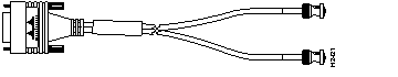 The following illustration shows serial cable CAB-E1-TWINAX= (part number CAB-E1-TWINAX=), which is used in the Cisco 7500 series, Cisco 7000 series, Cisco 3600 series systems, and AccessPro PC cards. This cable has a male DB-15 connector on the Cisco end and two BNC connectors on the network end.
