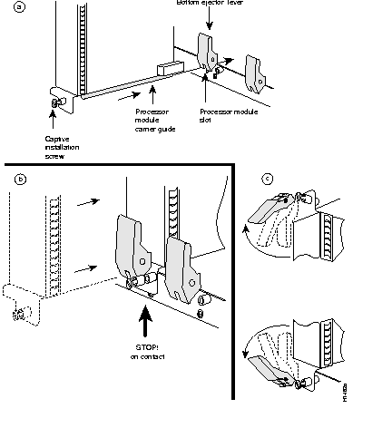 ![]() | Caution Removing the system master RSP4, while the system is operating, will cause the system to crash; however, the system will reload with the slave RSP4 as the new system master. To prevent any system problems, do not remove the system master RSP4 while the system is operating. |