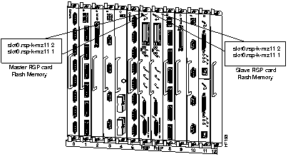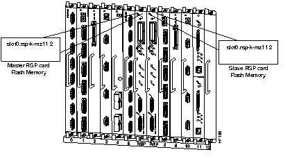 The Cisco IOS software images reside in Flash memory, which is located either on the RSP4, in the form of a single in-line memory module (SIMM), or on up to two Personal Computer Memory Card International Association (PCMCIA) cards (called Flash memory cards) that insert in the two PCMCIA slots (slot 0 and slot 1) on the front of the RSP4. (See Figure 1 or Figure 2.) Storing the Cisco IOS images in Flash memory enables you to download and boot from upgraded Cisco IOS images remotely or from software images resident in the RSP4 Flash memory.